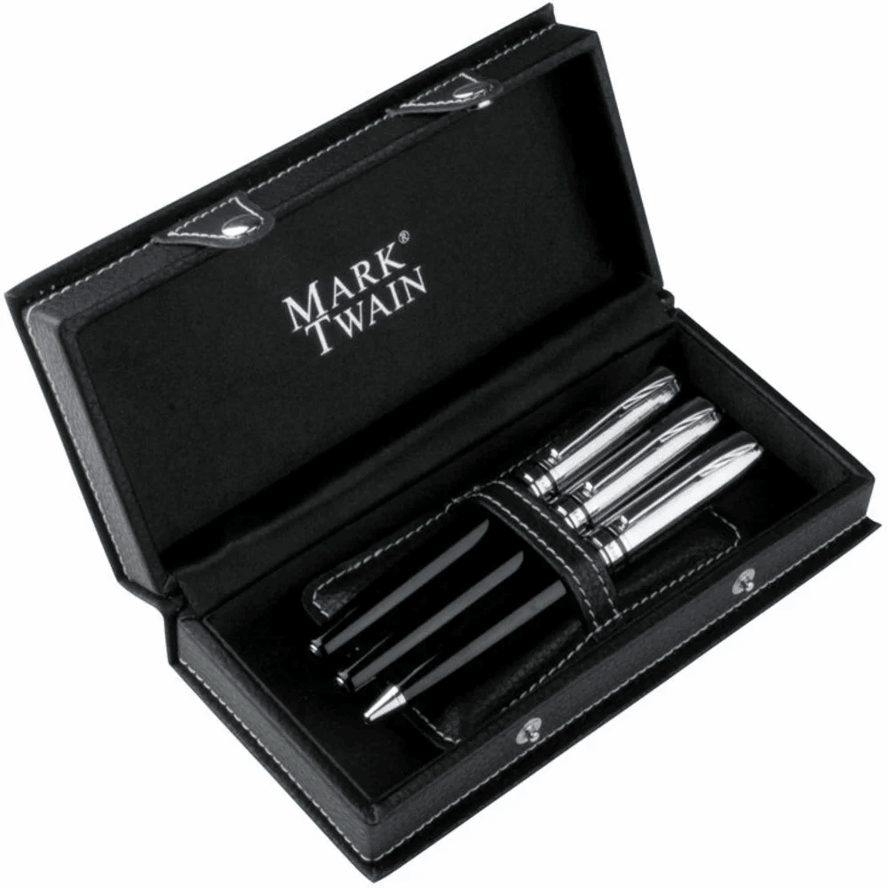 Роскошный и функциональный письменный набор в стильном подарочном футляре, состоящий из шариковой ручки, перьевой ручки, конвертера к перьевой ручке и ручки роллера.