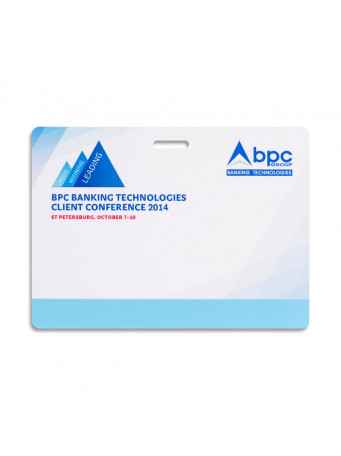 Пластиковые бейджи размера 110х80 мм часто используют для изготовления пропусков в офис, информационных карт на выставках, концертах и т.д. На лицевую сторону наносятся названия, имена и адреса, остальная информация может быть размещена на обратной стороне.