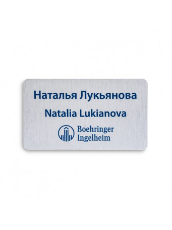 Металлический бейдж 65х35 мм на клипсе с булавкой
