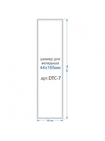 Вертикальный прозрачный кармашек с самоклеящейся основой модели DTС-7 — это отличный вариант компактного чехла, который подойдёт для хранения рекламных листовок и других материалов удлиненного вертикального формата. Внутренние параметры кармана — 44х185 мм.