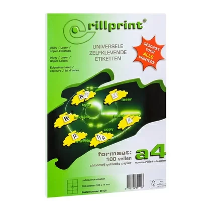 САМОКЛЕЯЩИЕСЯ ЭТИКЕТКИ УНИВЕРСАЛЬНЫЕ "RILLPRINT", 105X74 ММ, 100 ЛИСТОВ, 8 ШТ, БЕЛЫЙ