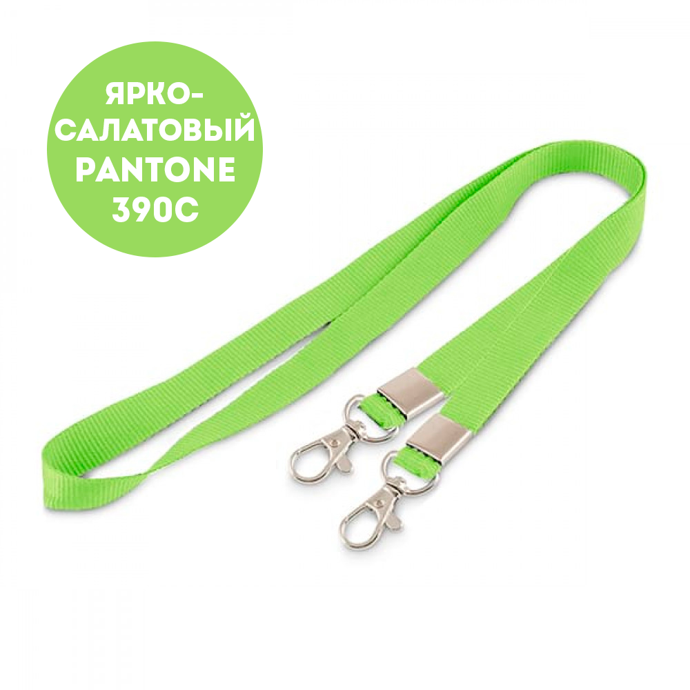 Лента для бейджа ярко-салатового цвета, с двумя карабинами-люкс наиболее надёжный вид крепления, предназначенный для бейджиков с двумя отверстиями по бокам. Подходит для ношения карт доступа, визиток, ключей и других мелких предметов. Металлическая застёжка очень легко открывается. Стандартная ширина изделия — 16 мм, длина — 880 мм. Лента может быть однотонной, разноцветной, с изображением или без. Параметры можно изменить при оформлении заказа.