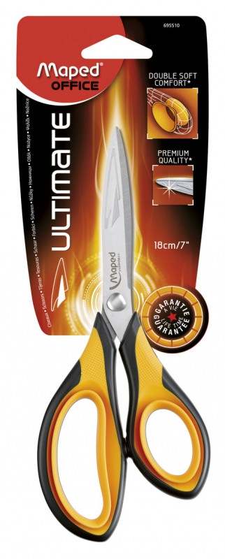 Ножницы Maped "Ultimate" 21 см - комфортные ножницы, которые подойдут как для офисной работы, так и для школьников и студентов. Эргономичные ручки с мягкими полосками гарантируют комфортное использование. А благодаря лезвиям из нержавеющей стали вы никогда не усомнитесь в долговечности представленных моделей. Удобство пользования и точность резки вне зависимости от индивидуальных особенностей руки. Размер 21 см. Цвет желтый.